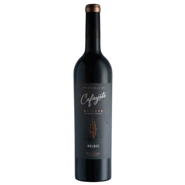 Vino Tinto Cafayate Reserve Malbec Botella De 750 Ml Este Malbec proveniente de viñedos de más de 30 años se destaca por su color rojo profundo con matices violáceos. A los típicos descriptores de la variedad como ciruelas o pasas de uva, se le agrega un toque de vainilla aportada por su crianza en roble. Estructurado, de buen cuerpo y largo final en boca.